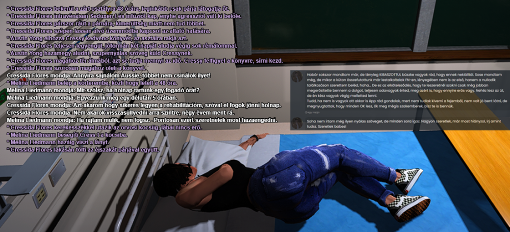 rokesz Létrehozva: Szeptember 19, 2024 Author Megosztás Létrehozva: Szeptember 19, 2024 (szerkesztve) Cressida összefoglalója az elmúlt három hetéről Nem tudom hogy kezdjem el ezt, legjobb ha beszámolok a legfontosabb dolgokról amik velem történtek az elmúlt hetekben. Sok barátot ismertem meg, egy ideig csak magamra tudtam támaszkodni, főleg mikor Seoulba kerültem legelőször. Teljesen egyedül voltam, nagyon sokszor kerülgetett az öngyilkosság gondolata is, de rátaláltam egy olyan emberre aki gyökerestül megváltoztatta az életemet. Ez nem más mint Austin volt, szerintem ő az egyik legkedvesebb srác a környékről, idővel pedig elkezdtük egymásnak kimutatni az érzéseinket. Boldog vagyok amiért rátaláltam és nagyon szeretem a szívem legmélyén. Három héten keresztül tiszta is voltam, egyrészt megígértem neki hogy leszokok, másrészt pedig nem tudtam amúgy se bármilyen szerhez hozzájutni. Kútnál jobb munkát nem igazán találtam, de nagyon szar volt ott nekem, sokan tették rám a megjegyzéseket és kaptam fenyegetéseket a lakásom előtt. Olyanokat például, hogy megölnek engem vagy elvágják a torkomat, csak rontott a helyzeten a seouli verekedések és lövöldözések sorozata is. Nagyon fenyegetve éreztem magam, akkor döntöttem el hogy másik környékre költözök inkább, ahol nyugodtabb napjaim lehetnek. Viszont nem egyedül költöztem el onnan, hanem Yaslynn-al akit a kúton ismertem meg. Hasonló kaliberű lány ugyanabba a cipőben, megengedtem neki hogy nálam lakjon Seoulban amíg jónak gondolja. Itt szoktam vissza a szarokra aminek eddig szedtem, újra magamba toltam az oxyt, ráadásban még füveztem és gombáztam is. Örültem Yas fejének, annyira jól éreztem vele magam akárhányszor valamit csináltunk. Befoglaltuk az új lakást a megmaradt pénzünkből, itt kezdődtek a gondok a fejembe. Egész nap kokainoztunk, egy sráctól szereztem aki később Yas párja lett. A lány kapott még angyalport is, nem gondoltunk bele hogy nem kellene keverni a két drogot. Yaslynn azon a napon majdnem megölte magát túladagolásban, a kokain miatt nem voltam egyáltalán magamnál, csak később gondolkoztam el ezen. Az első lelki összetörés is jelentkezett nálam, akkor éreztem úgy igazán hogy vissza akarom kapni a régi életemet és helyrehozni az elmúlt négy-öt évemet. Austin körbevezetett engem Textile Cityben, az egész gyerekkorát ott töltötte, boldogság töltött el amiért újra tudtam őt látni. Akkor ritkábban tudtunk találkozni, inkább Yas-ra fordítottam az időmet. Felkísértem a lakásba ahol megkínáltam az általam készített füves sütiből, elég erős volt, jó éreztem magam és aztán... valami előtört bennem. Ránéztem Aussie-ra, őszinte akartam vele lenni és elmondtam neki a függőségemmel kapcsolatos dolgokat. Teljesen összetörtem lelkileg, haragudtam magamra és bűntudatom amiért megígértem neki hogy tiszta leszek. De mégse így tettem, hagytam hogy a kényszerem irányítson engem, ekkor Yas fent volt a pasijával a hálószobában. Lejöttek mindketten, Aussie és Sully addig kimentek cigizni, elmondtam mindent Yas-nak hogy miért estem össze mentálisan. Szegény Yas meg magát hibáztatta, annyira hogy végleg el akart tűnni az életemből, nem engedtem meg neki. Soha se tudtam rá ez miatt haragudni, elvégre én csesztem el az életemet. Úgy érzem valami rosszat tettem jelenleg a visszaszokásommal, de azért hogy megismerhessek egy nagyszerű barátot és jó útra tereljem mindkettőnk életét. Vázoltam neki hogy végre befekszek egy elvonóra és segítek rajta is. Nem csak magamra akarok gondolni, hanem másokra is akik fontosak nekem. Yas belement az ötletembe, megígértem neki hogy soha nem fogom őt elhagyni. Aussie pszichológust akart nekem keríteni, de ide sokkal több kell. Holnap befekszek egy elvonóra, ha kell addig maradok ott míg teljesen tiszta nem leszek. Jó barát és pár akarok lenni ha törik vagy szakad, annyira sokat segítettek már nekem. Nagyon szeretlek titeket Aussie és Yas! Szerkesztve Szeptember 19, 2024 - rokesz 3 1 2 Idézet Link a megjegyzéshez https://forum.gtaworld.hu/index.php?/topic/261-cressida-flores/#findComment-1922 Megosztás egyéb weboldalon További megosztási lehetőségek...
